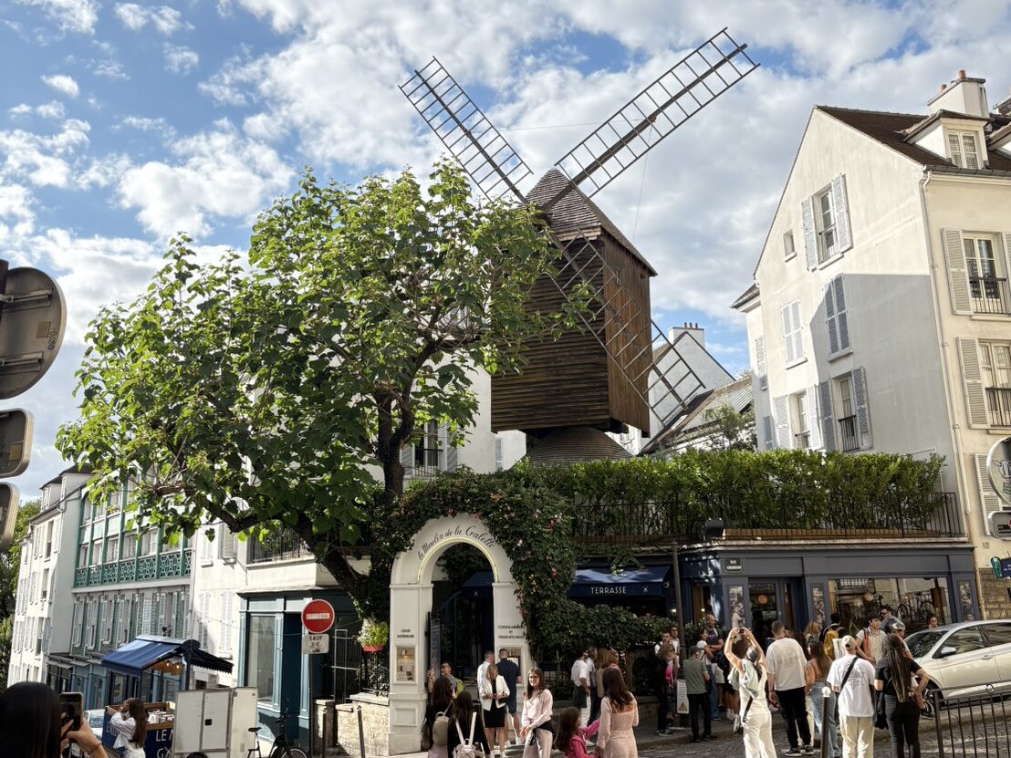 風車のレストラン『ル・ムーラン・ドゥ・ラ・ギャレット』、こちらもモンマルトルで有名なスポット!ルノワールの作品の舞台で、こちらも多くの方が訪れる写真スポットです。