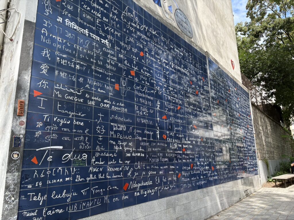 散策の途中に立ち寄れる人気スポットが 「ジュテームの壁(Le mur des je t’aime)」。
