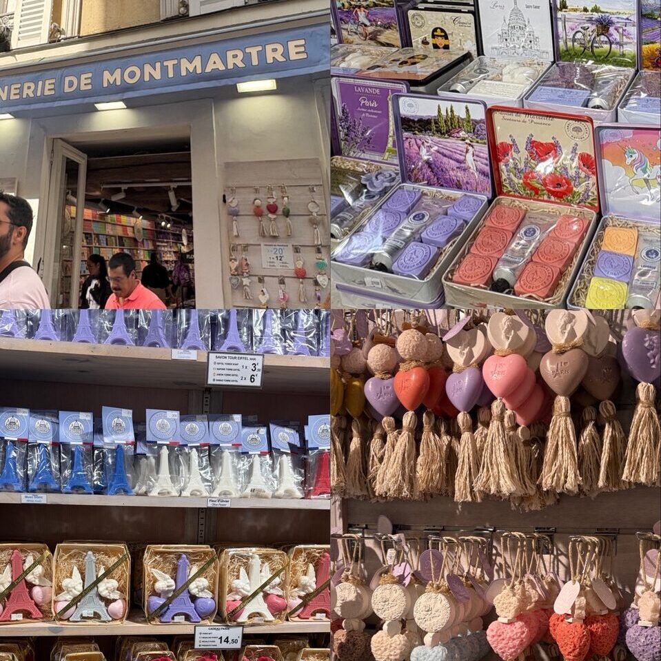 かわいい石鹸屋さん。エッフェル塔デザインの石鹸がかわいいです💗値段の幅も広いのでお土産として選びやすいのもポイントです!