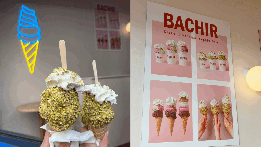 ピンクの看板がかわいいアイスクリーム屋さん。店員さんもとてもフレンドリーでした!私はピスタッチオのアイスクリームを食べました。スモールサイズでも十分ボリューミーです🍦