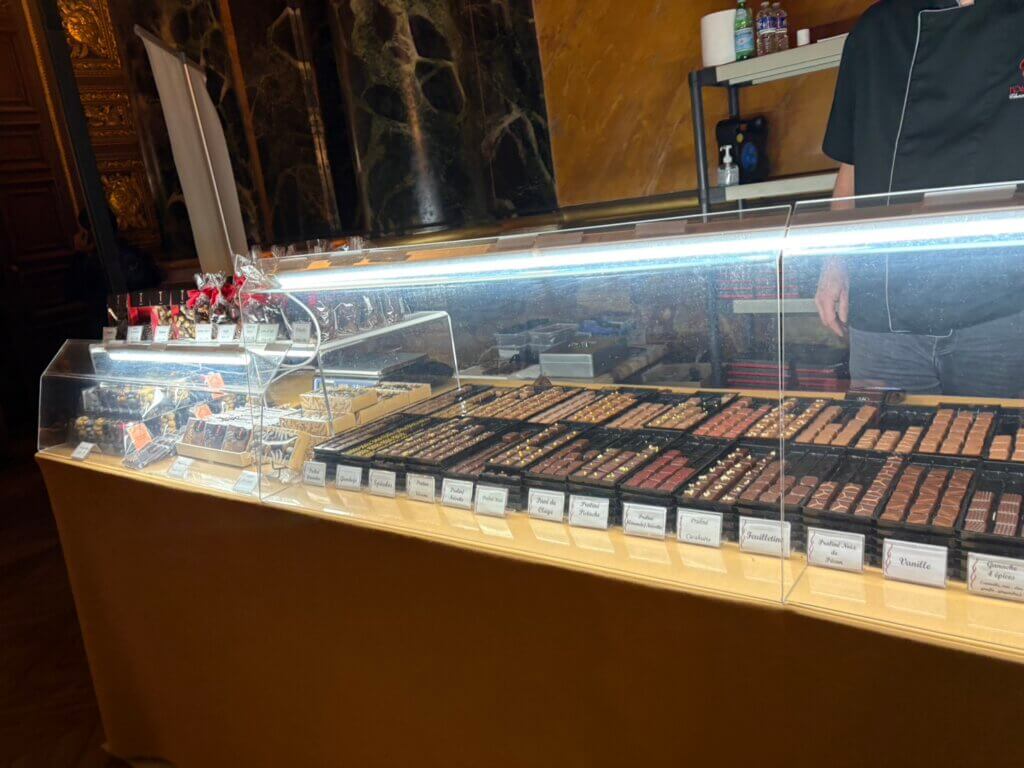 高い天井、美しい装飾に囲まれた空間に、色とりどりのチョコレートがずらりと並びます😍