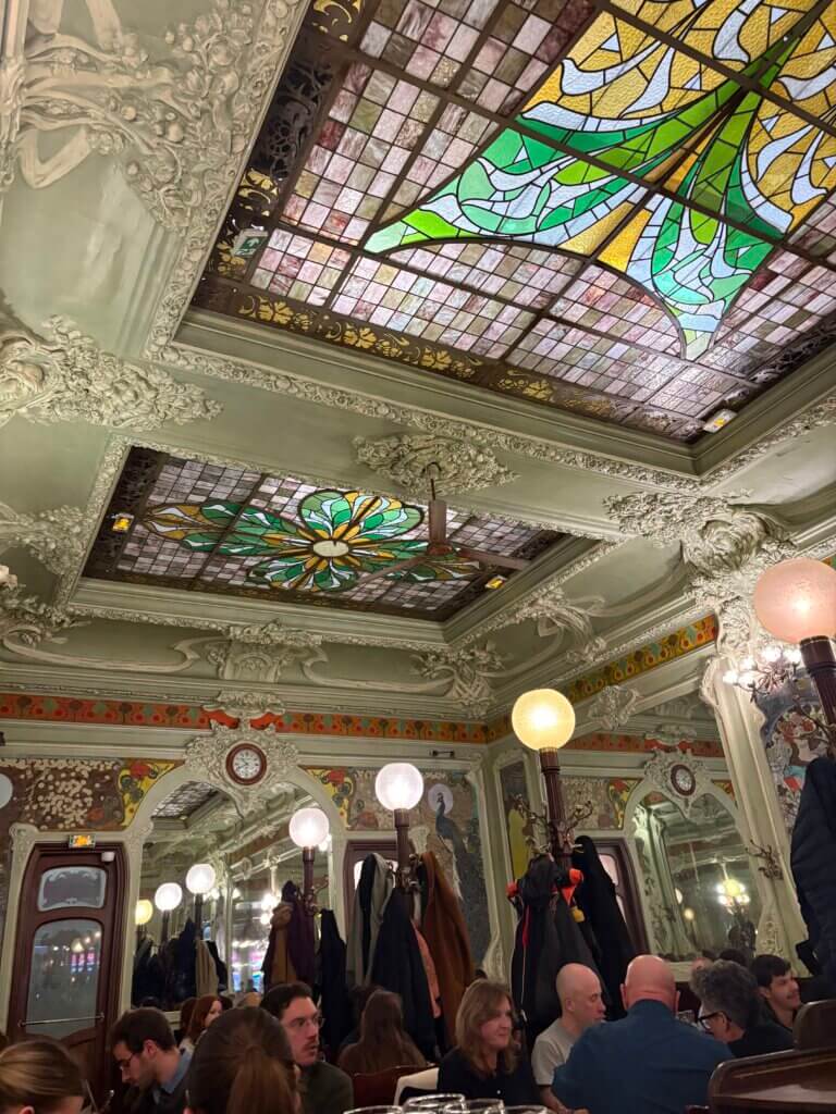 Chartierと同じ「ブイヨン」業態でありながら、こちらはさらにラグジュアリーな内装が目を引きます。1906年建築のアールヌーボー建築そのものを活かした空間は、高い天井、ステンドグラス、精緻な装飾が連続するフォトジェニックな場所。「ここまでの空間で €20台で食べられるの?」という驚きがあります。