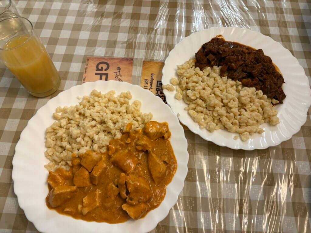 チキンをパプリカソースで煮込んだ伝統料理は、見た目以上に優しい味わい。量はかなり多めです。メニューに半分の量でも注文は可能(70%の価格)と書いてあったので、それを利用するのもありかもしれません!ハンガリー名物のピロシュカシロップジュースとも相性抜群です。