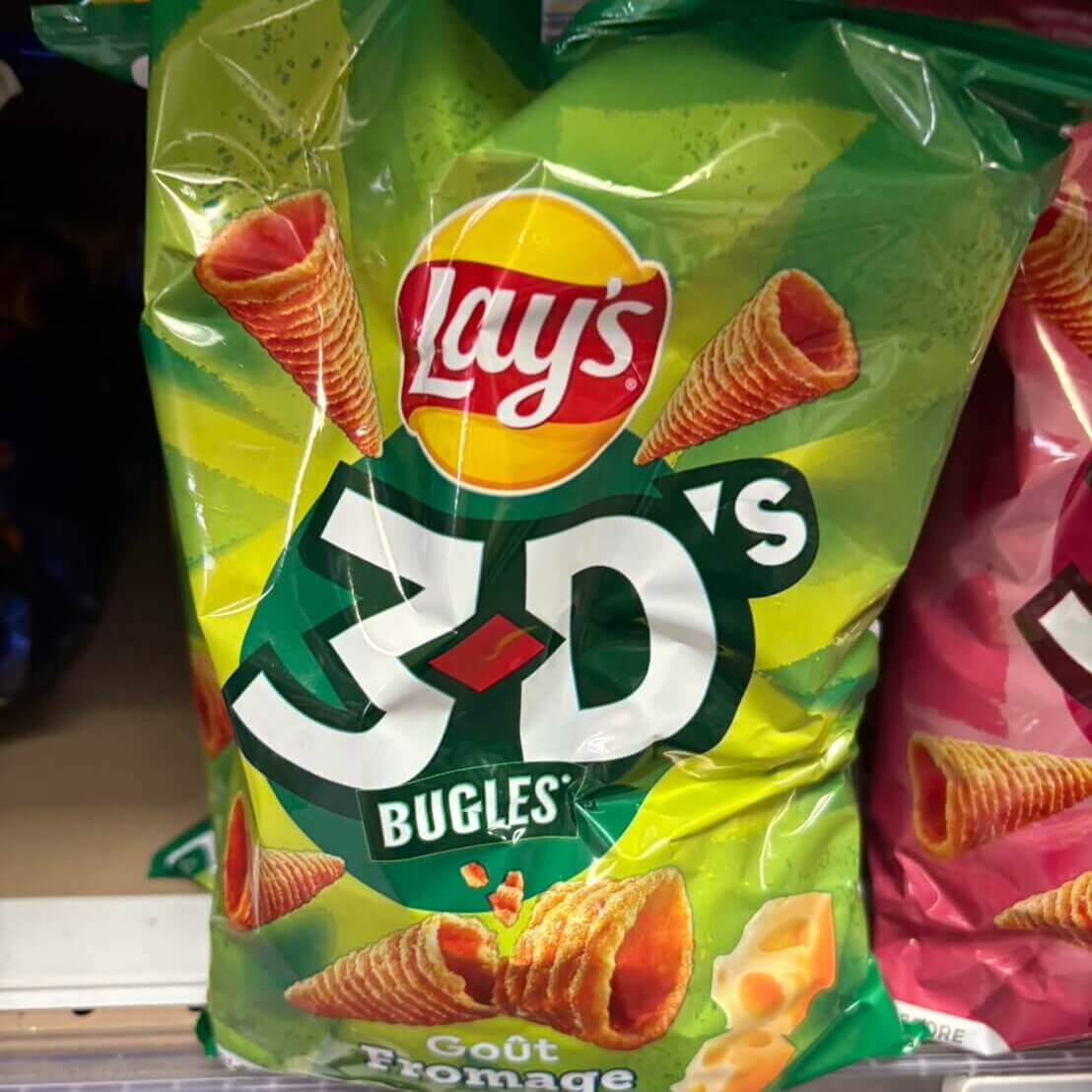 「Lay’s 3D」は、フリトレー(Frito-Lay)社が展開するユニークなスナックシリーズで、特に「Bugles(ビューグルズ)」と呼ばれるコーン製の円錐形スナックが特徴です。日本でいうと、とんがりコーンに似たお菓子です!